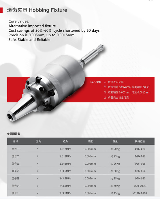 Products include honing fixture, gear grinding fixture, gear hobbing fixture, shaving fixture, all kinds of collet, face drive.